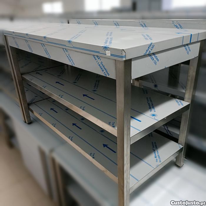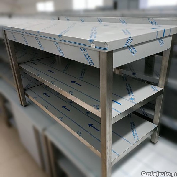 Bancada em inox com 2 prateleiras (1300x600x850mm)