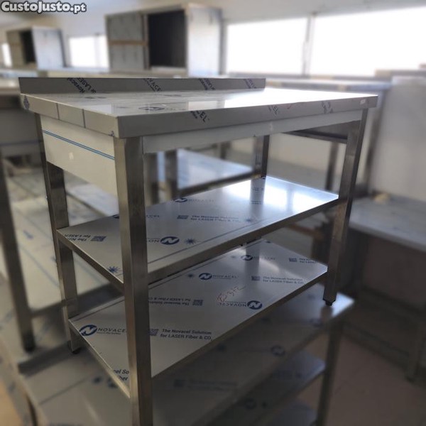 Bancada em inox com 2 prateleiras (1000x500x850mm)