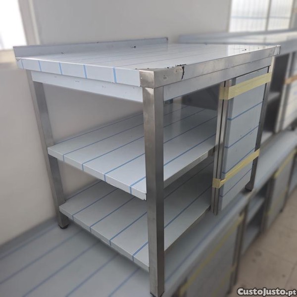 Bancada em inox com 2 prateleiras e portas de correr (1000x700x850mm)