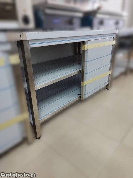Bancada em inox com 2 prateleiras e portas de correr (1400x700x850mm)