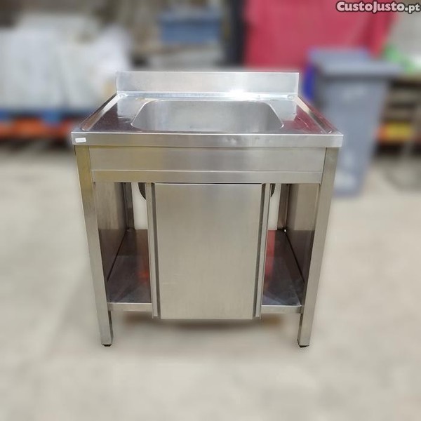 Bancada em inox com cuba 50x50x30cm e portas de correr (800x700x845mm)