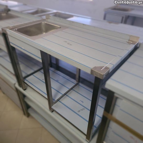 Bancada em inox com cuba lavadoura 40x34x15cm (1200x600x900mm)