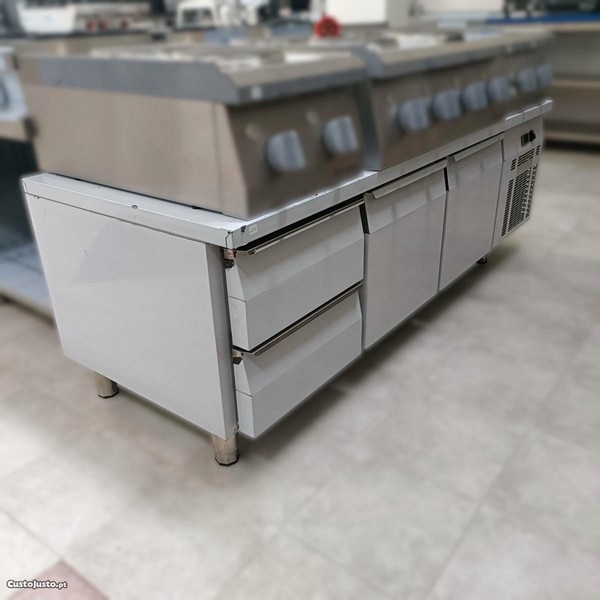 N490 - Bancada refrigerada baixa para linha de queima, com 2 portas e 2 gavetas. 1 prateleira GN 1/1 por porta. Construção em inox.Dim: 1800x700x650mmCom garantia!Mais informações ligue ou envie mensagem para o nosso número com WhatsApp 918 579 751.Temos outros equipamentos novos e usados em Mem Martins - Sintra.Estamos abertos segunda a sexta das 9:00h às 13h e das 14:30h às 18:30h.