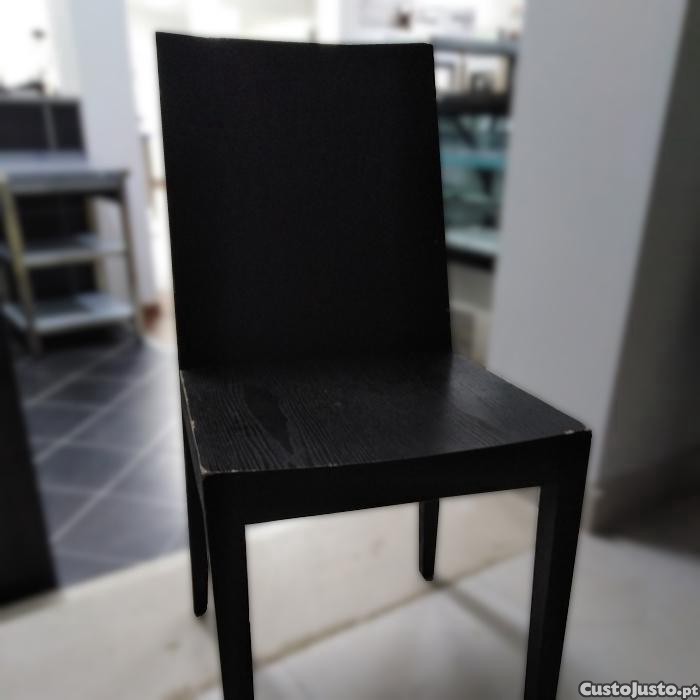 A364- Conjunto de cadeiras de madeira tons de wengue.