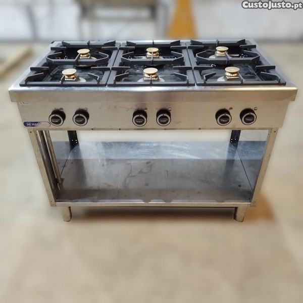 Fogão com 6 queimadores a gás sobre base aberta (1100x650x900mm)