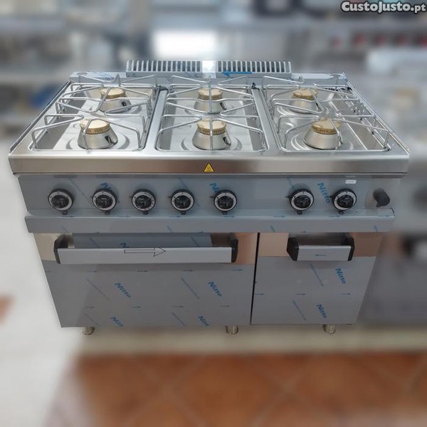 Fogão com 6 queimadores e forno a gás GN2/1 (1100x717x850mm)