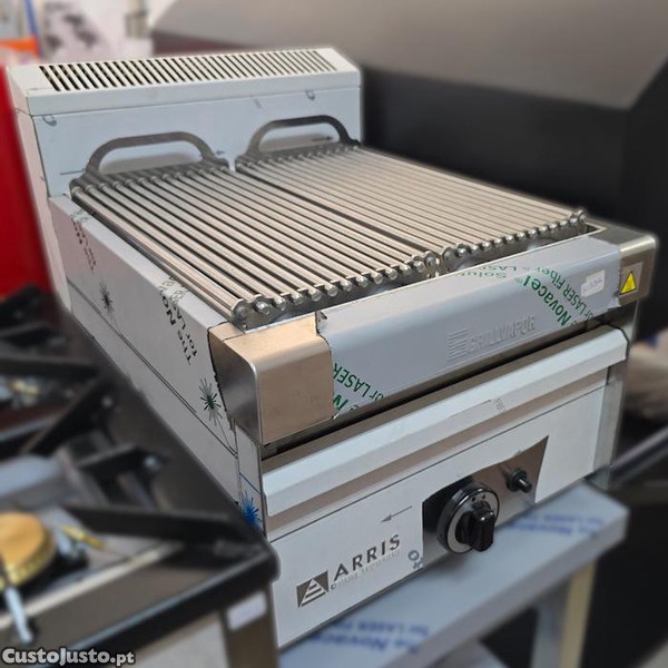 Nota: Equipamento de origem Italiana. Os gases da queima não passam pelo alimento, gaveta para água tornando o alimento mais suculento e a gordura cai na agua fazendo menos fumo.