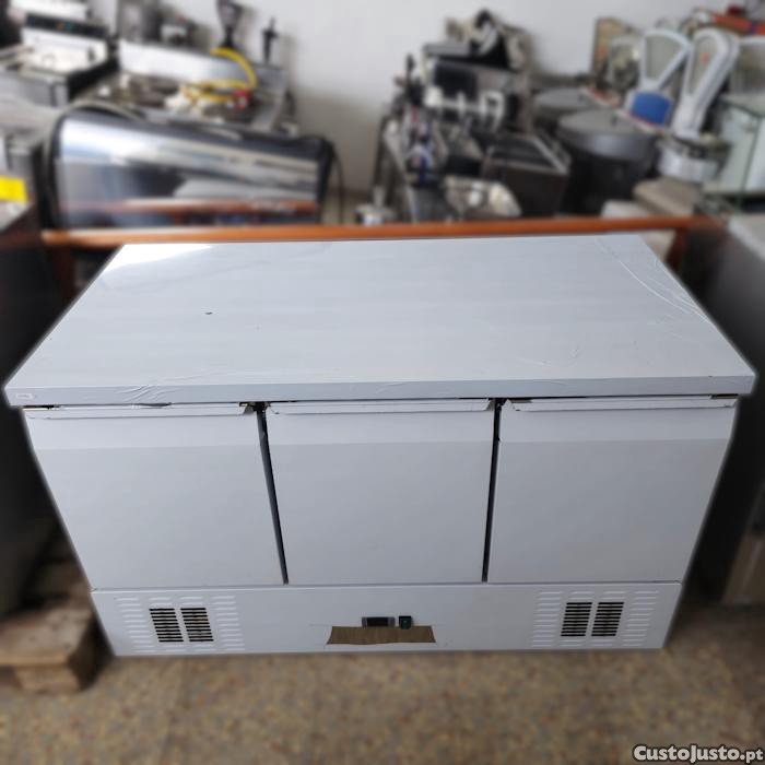 Saladete refrigerada com 3 portas e tampo de trabalho em inox (1365x700x850mm)