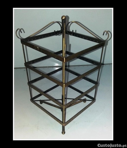 Expositor, em metal, formato retangular, 4 níveis de exposição, capacidade para 96 pares, A32 x L16cm, excelente estado.