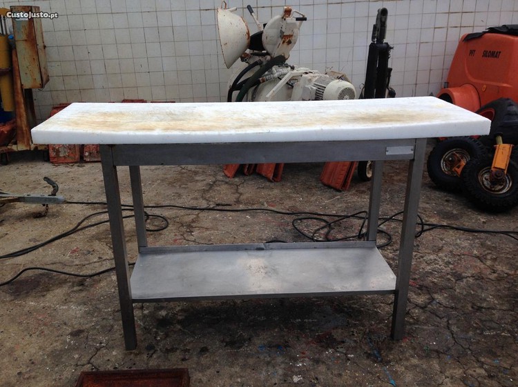 Vendo ou eventualmente poderei trocar por algo a combinar Bancada em inox com o tampo em Teflon branco usada nos talhantes e outros