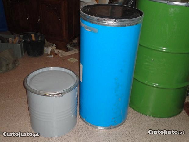 Vendo bidons de cartão, desde 30 a 120 litros em cartão plastificado, limpos, como novos, óptimos para sólidos. Outros em chapa tratada de 40 a 240 litros. Abertura total. com tampa de cinta.