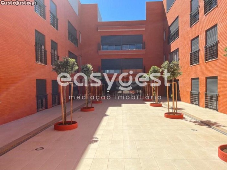 Tem um lugar de garagem e uma arrecadação na cave, um espaço comum no exterior com churrasqueira e um terraço também comum na cobertura com vista para o Rio Tejo.