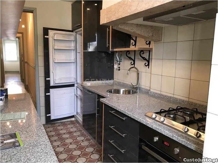 A cozinha está totalmente equipada e moderna, contrastando com o magnífico chão antigo, de azulejos originais. Tem uma sala bastante ampla dividida em duas áreas, um hall de entrada com armário/sapateira, 2 quartos, 1 casa de banho ampla, 1 despensa e uma varanda fechada com acesso a um Logradouro.