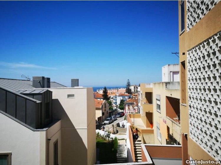 Apartamento T2 - vista de mar - completamente remodelado no centro da Parede . 1º andar sem elevador composto por hall de entrada, sala comum com varanda e vista de mar, cozinha equipada com placa, forno, esquentador, máquina de lavar roupa, despensa e varanda, hall dos quartos com um roupeiro com 4 portas, 2 quartos com 15m2 sem roupeiros. WC com banheira.