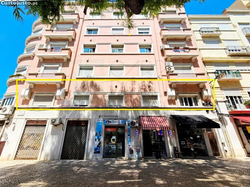 Apartamento de traça antiga com pé-direito de 3,05 metros e chão em taco de madeira maciça. Este apartamento T5 foi remodelado em 1998, podendo beneficiar com uma modernização. Inserido em emblemático edifício de placa betão construído em 1940. Este prédio com elevador tem porteira.