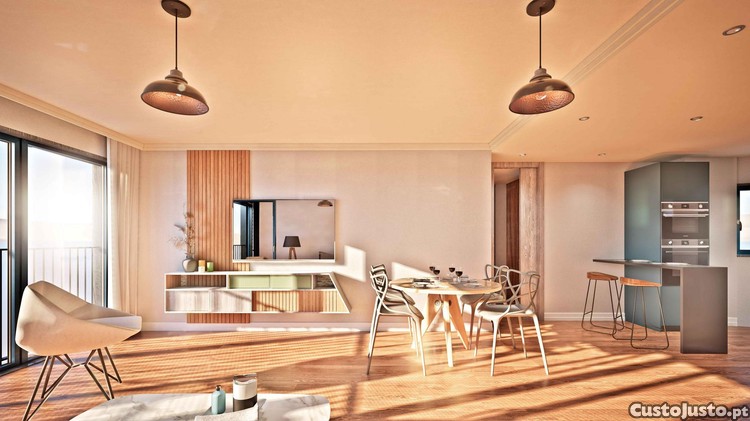 Arquitetura inspirada na herança lisboeta, com elementos modernos discretamente integrados.