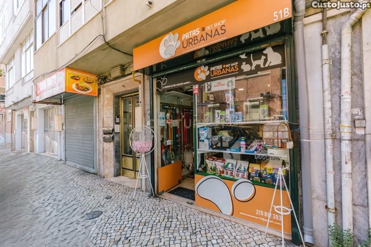 Espaço comercial com cerca de 61,17m2, atualmente configurado como loja de venda de rações e equipamentos para cães, gatos, pássaros e peixes, assim como venda de pássaros e peixes para aquários.