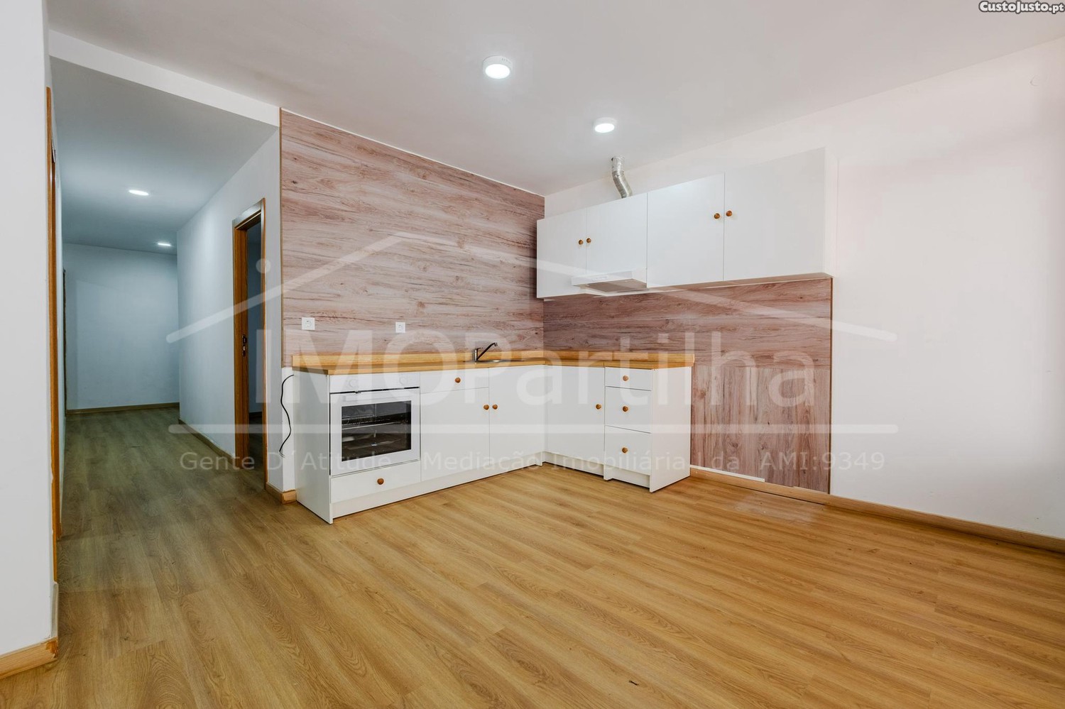 - Sala e cozinha em regime open space, equipada e com espaço para restantes eletrodomésticos;