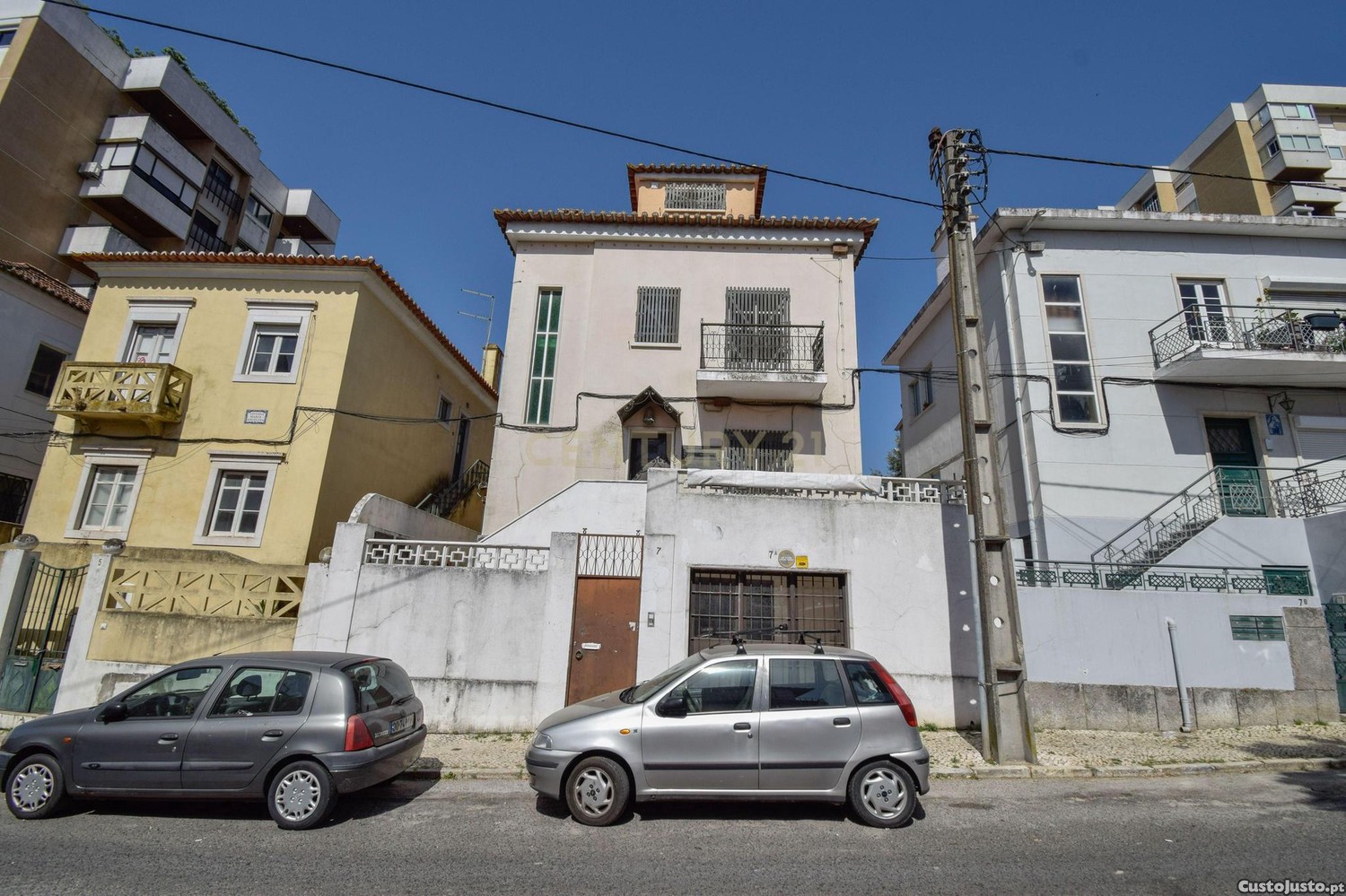 Fantástica moradia de 4 pisos com grande potencial de reinvenção, inserida numa zona calma em Carnide, num lote de 200 m2 e com uma área bruta de 234m2, a que se somam 50m2 de um anexo (não licenciado).