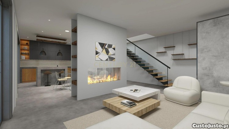 Neste terreno de 327,8m², será construída uma moradia contemporânea de dois andares, com projeto aprovado e conclusão prevista para o início de 2026.