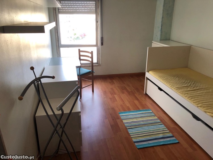 Alugo Quartos individuais só a jovem estudante ou senhora com emprego , apartamento com bom ambiente, com bastante comércio , serviços e transportes a porta, não se aceita qualquer tipo de animal de estimação.