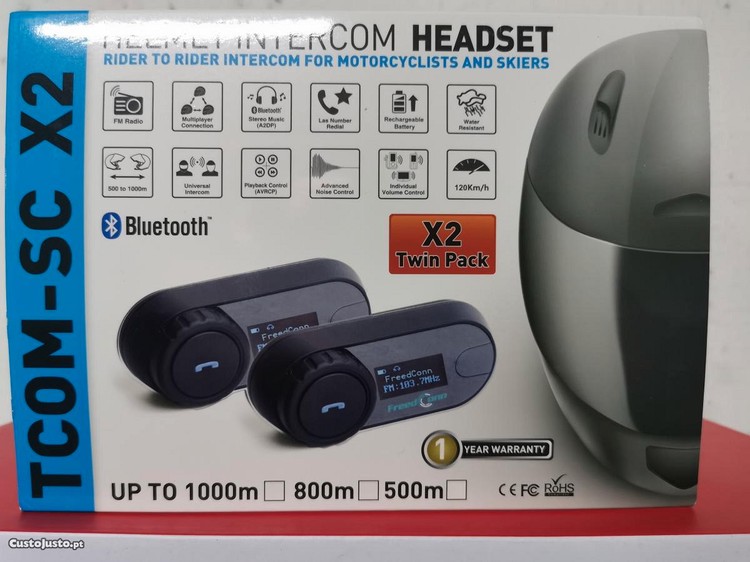 Preço: 110 €2-Auriculares/intercomunicadores Bluetooth, C/RADI