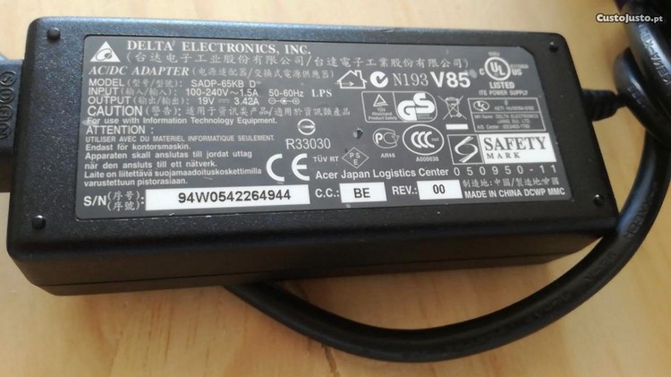 Preço: 20 €AC/DC Adapter Delta Electronics Inc. Model: SADP-65KB D