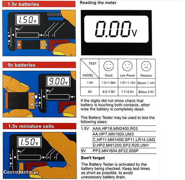 Se a agulha não se mover, verifique se a bateria está tocando em ambos os contatos antes de assumir que está completamente morto.