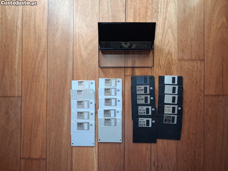 Vendo caixa de 20 disquetes usadas, MF2HD 3.5" 1.44MB e 2MB das marcas KAO (cinzentas), TDK, Lexmark, HiSpace e sem marca (todas pretas).