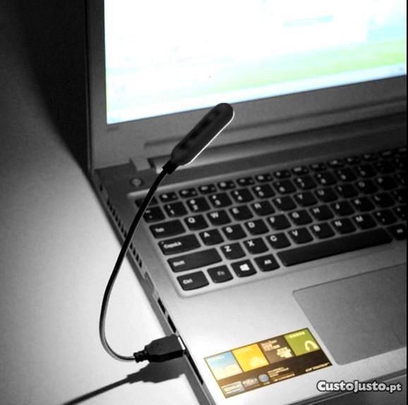 Candeeiro LED de leitura novo e de alta qualidade, com ligação por USB a Computador, Laptop, Notebook, Power Bank, TV Box, Aparelhagem de HiFi ou outras entradas USB de 5V que existam em dispositivos.
