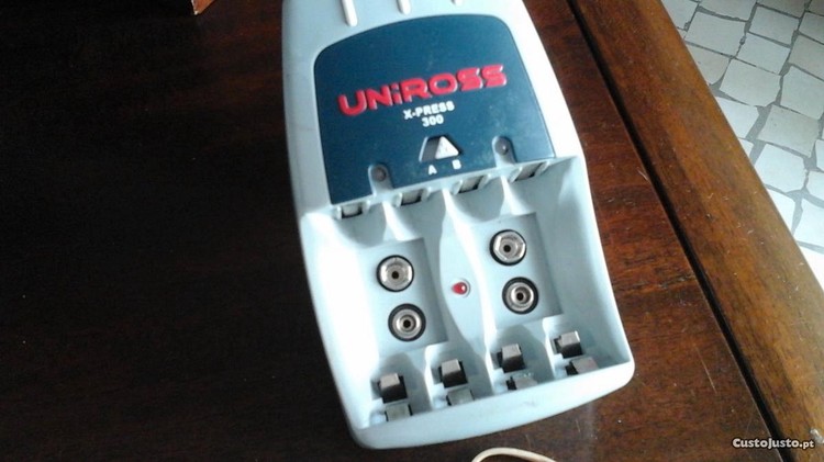 Três carregadores de pilhas como novos o de marca Uniross 1 dá para carregar duas, quatro pilhas AA ou duas de 9v carga lenta ou rápida com luzes indicadoras de carregamento 12 euros