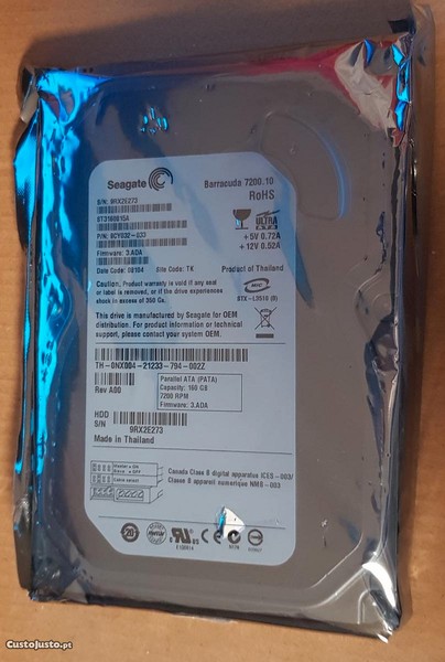 Preço: 20 €Disco interno de 160Gb Ultra ATA 3,5" Seagate ST3160815A // NOVO