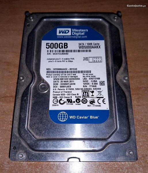 Preço: 8 €Disco rígido interno WD 500gb 3.5" sata para desktop