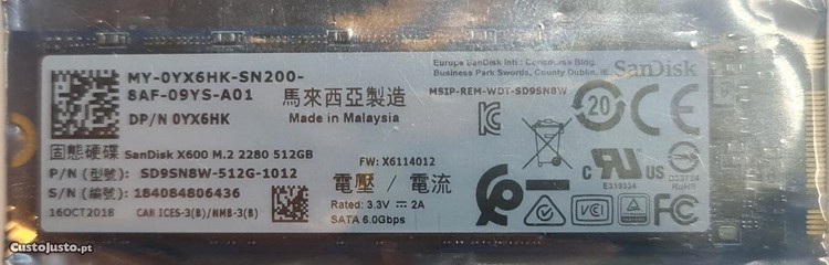 Preço: 45 €Disco SSD M.2 512Gb Sandisk (NOVO)