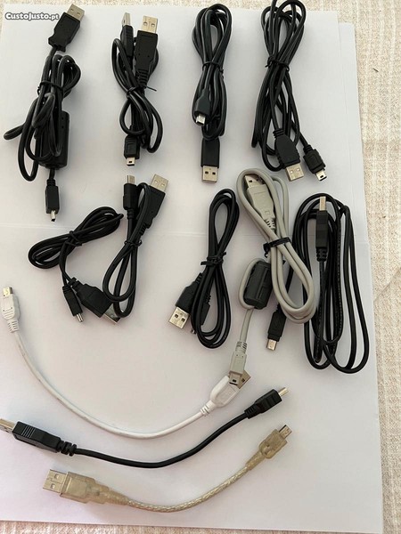Vendo cinco extensões cabo USB (Macho/fêmea) + 12 cabos USB/mini USB.