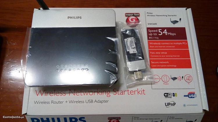 Kit Philips composto por router e placa USB sem fios 54Mbps.