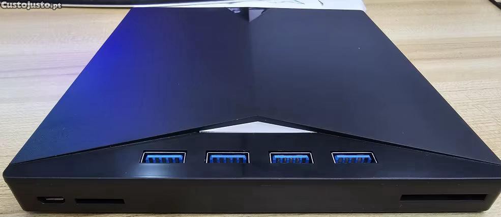 Com hub para ligar varios USB, micro USB, TF e SD.