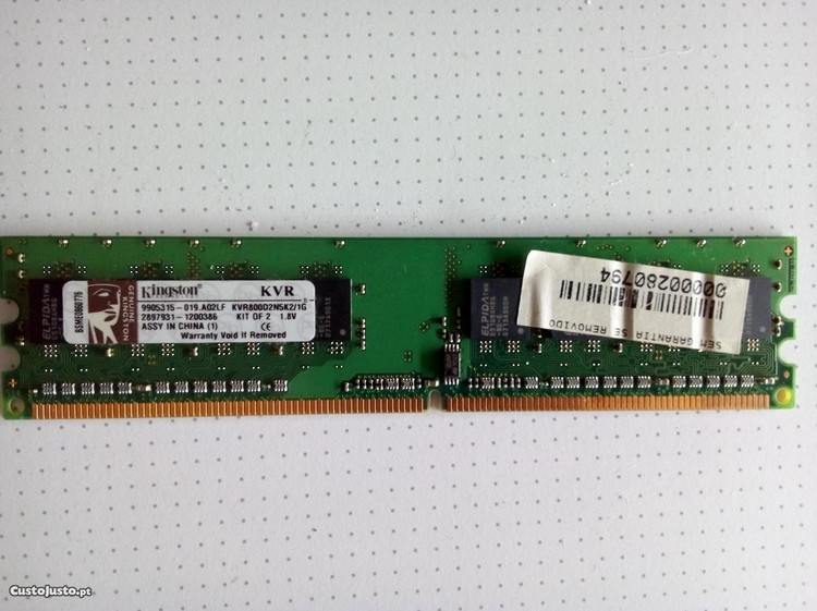 Preço: 7 €Memória Kingston DDR2_800 512Mb