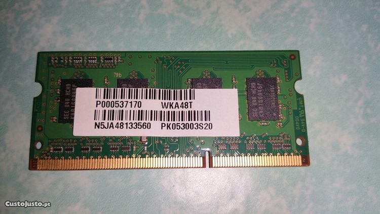 Esta memória foi retirada de um computador novo para pôr mais RAM originária de um computador Toshiba 100 % porcento a funcionar