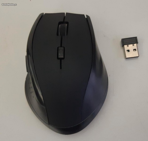 Rato sem fios, com respectivo receptor USB. Funciona com 2 pilhas AAA, não incluídas.