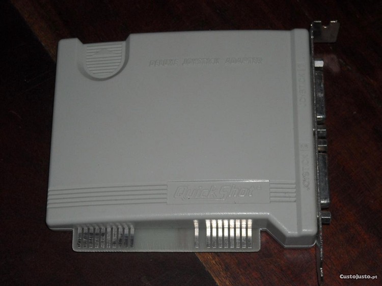 Placa antiga "Quickshot Deluxe Joystick Adapter" para adaptar joysticks / pads no PC, foi comprada nova e usada no meu 286. Desde que mudei de PC não foi mais utilizada.