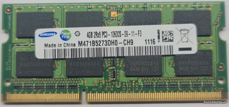Samsung 4GB DDR3 1333MHz PC3-10600, Unbuffered SODIMM, M471B5273DH0-CH9, como nova.