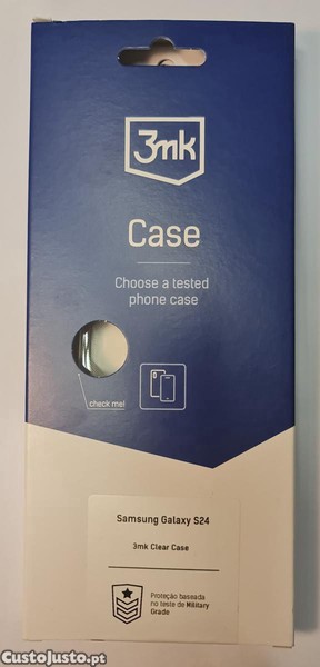 Capa 3MK clear case + vidro rígido 3MK para Samsung Galaxy S24, novos a estrear em embalagem selada.