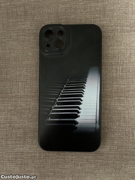 Vendo capa para iPhone 14 Plus preta com desenho de piano
