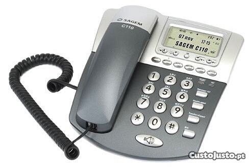 Telefone fixo, com fios, Sagem C110. Este telefone veio com o display LCD avariado de origem. Nunca foi usado por esse motivo e portanto está novo e completo. Apesar desta limitação, funciona perfeitamente como se fosse um telefone normal sem display. Possui função mãos-livres e volume de chamada regulável. Entregue em embalagem original.