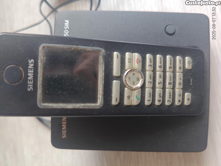 Telefone sem fios Siemens Gigaset E450 SIM com bateria nova, carregador e base. Com marcas de uso. Permite usar cartao SIM na base do telefone.
