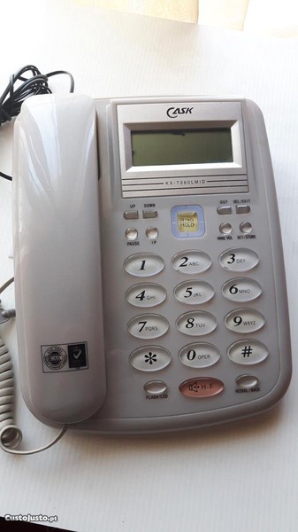1- Cask KX-T060LMID, cor cinza, com display LCD, teclas grandes ovalizadas transparentes em fundo branco, regulação do volume da campainha, visualização do número marcado, identificação do chamador, alta-voz e agenda de contactos. Fornecido com caixa, mas usado. O display LCD tem um ligeiro derrame mas não afecta a visualização e a funcionalidade. Preço 7eur.