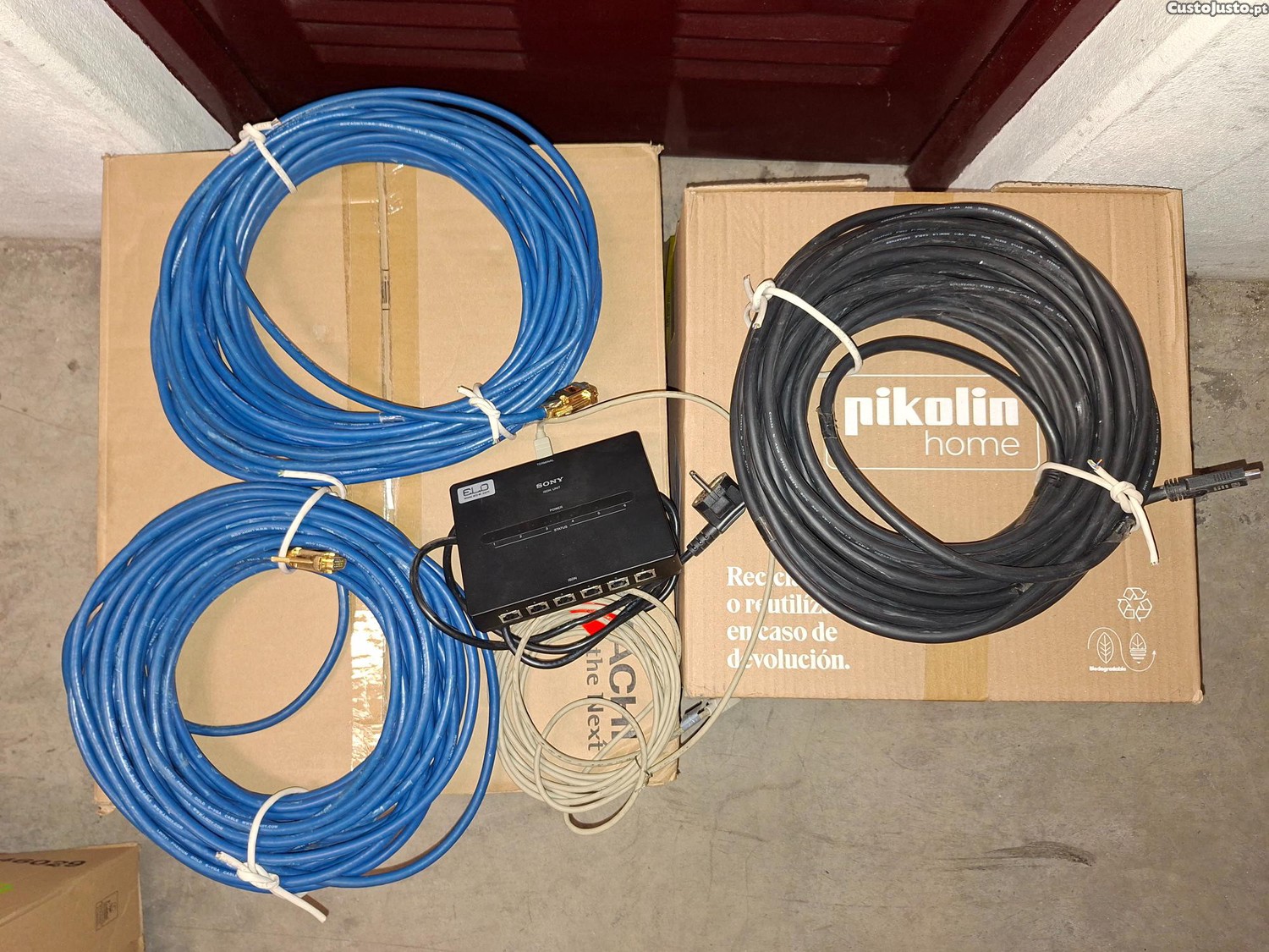Vendo conjunto de cabo HDMI 1.3 COPARTNER E119932 AWM STYLE 20276 de 30 metros na cor preto e cabo VGA INDY Premium Gold S-VGA de 30 metros na cor azul em excelente estado. Ofereco uma Unidade ISDN para Sistemas PCS - Sony PCSA-B768S. Os cabos e o equipamento estao praticamente novos, sem qualquer tipo de danos fisicos.