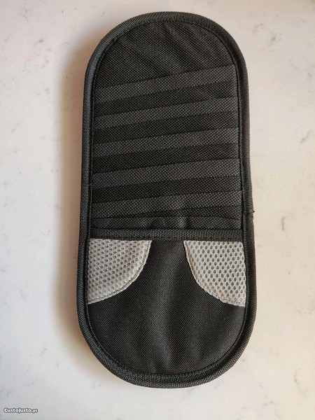 Estojo em nylon arquivador até 12 CD, em bom estado. Possui na parte posterior 2 elásticos com terminação em velcro. Ideal para viagens.