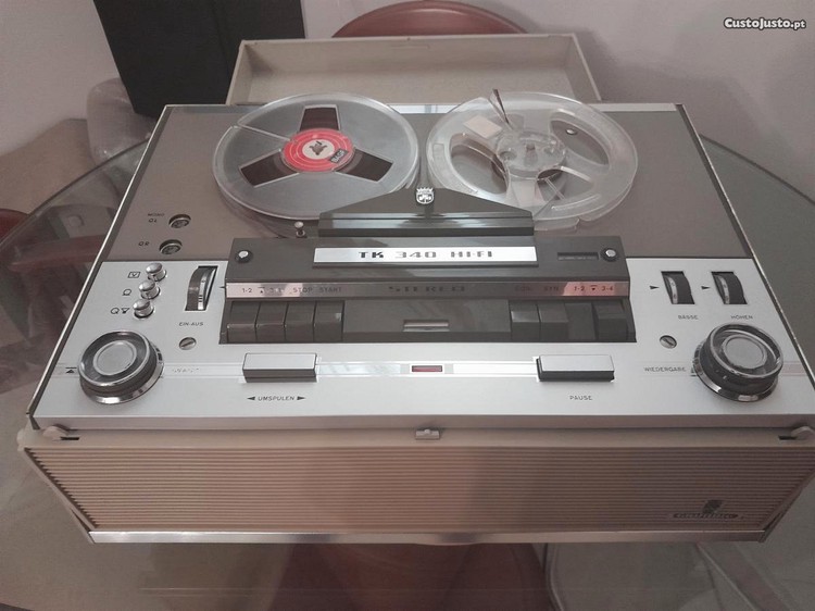 Marca: GRUNDIG; Modelo: TK340 HI-FI; Ano de fabrico: 1966/67; Origem: Alemanha. - Gravador de bobines estereofónico de 4 pistas e 3 velocidades, para bobines até 18 cm. - Amplificação: 6 válvulas + 14 transístores, com 12 W de saída por canal em Alta Fidelidade. Na época, o topo de gama da Grundig !. - Foi reparado, limpo e lubrificado, as cabeças limpas e afinadas, e substituídas correias de tracção. - Além da reparação eletrónica, toda a caixa foi limpa e tratada, assim como foram repostos os logos originais em falta. Encontra-se a funcionar plenamente após restauro, posso enviar vídeo de demonstração.
